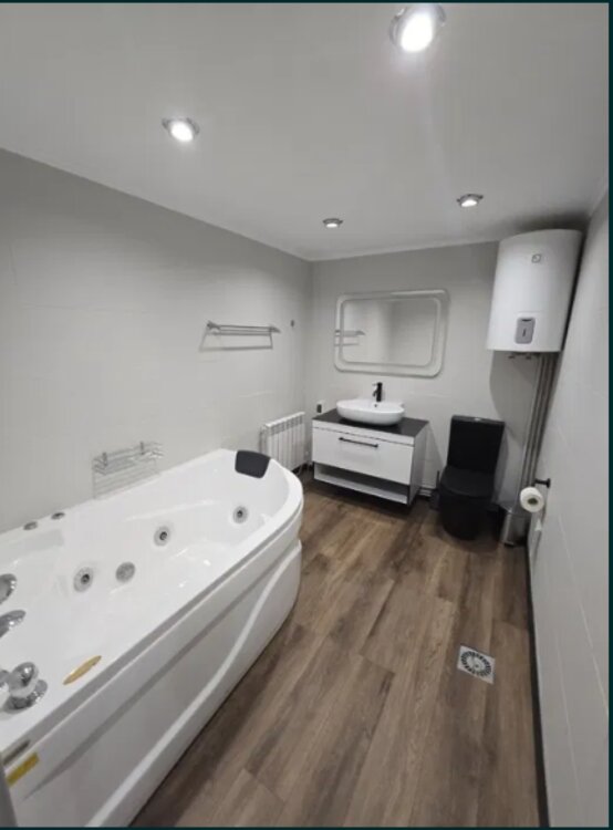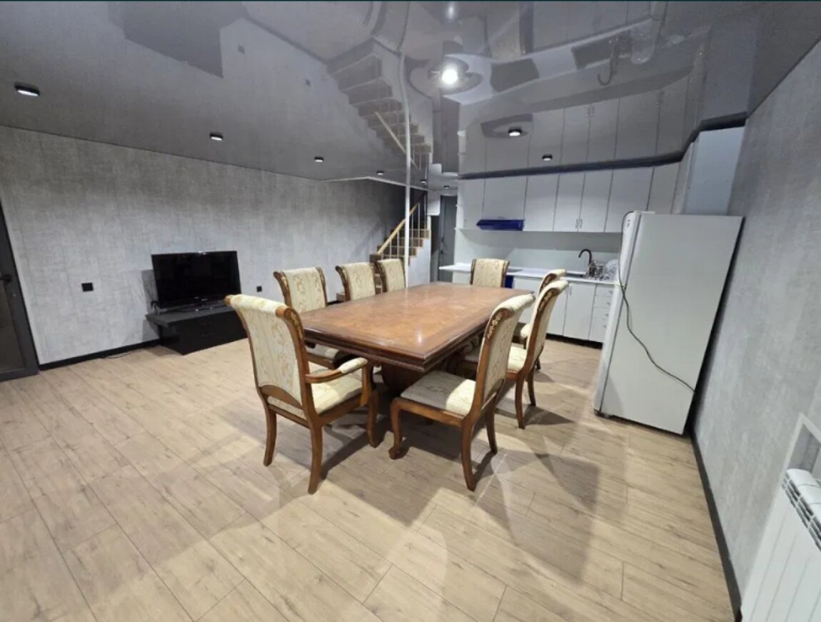 34826. Продаётся помещение площадью 355 м² с удобной планировкой и тремя отдельными входами. Фасадная часть идеально подойдёт под торговый зал, представительство или офис, а задняя часть и цоколь оборудованы для проживания — со всеми удобствами, как в квартире.Внутреннее пространство можно перепланировать под кабинеты, офисы или жилые комнаты. Есть баня, бассейн, джакузи, бильярдная. В продаже с мебелью и техникой. На территории предусмотрено 5 парковочных мест.