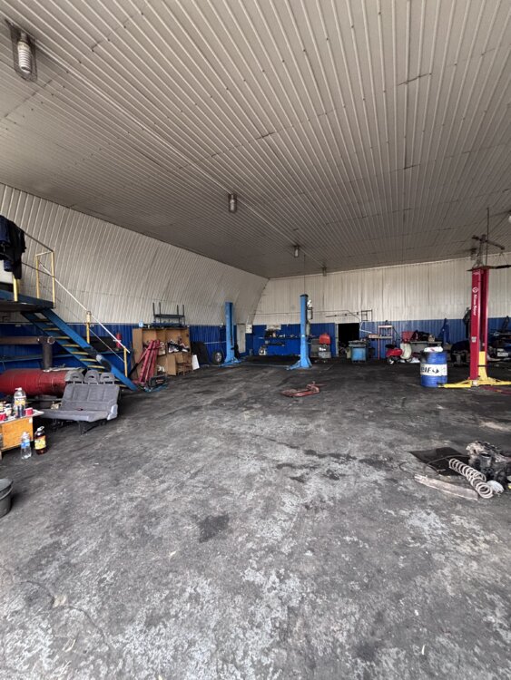 • Просторный ангар с высоким потолком — удобно для работы с крупногабаритной техникой или установки подъёмников.