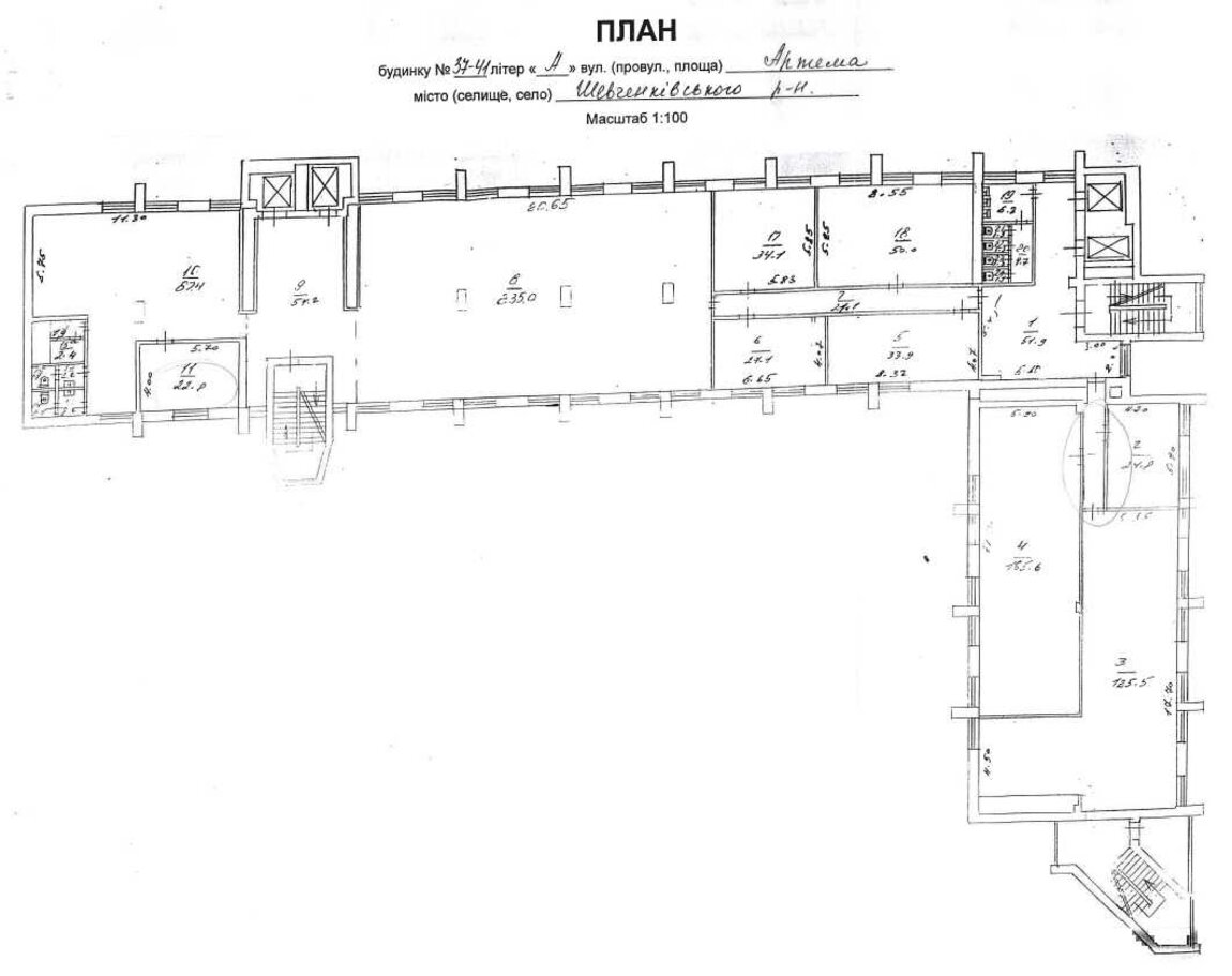 Контакти для зв’язку: 0504327942 Євгенія. Пропонуються до продажу офісні приміщення заг. пл. 890 кв.м., що складають 8/100 нежилого будинку, який знаходиться за адресою: м. Київ, вул. Січових Стрільців, 37-41.