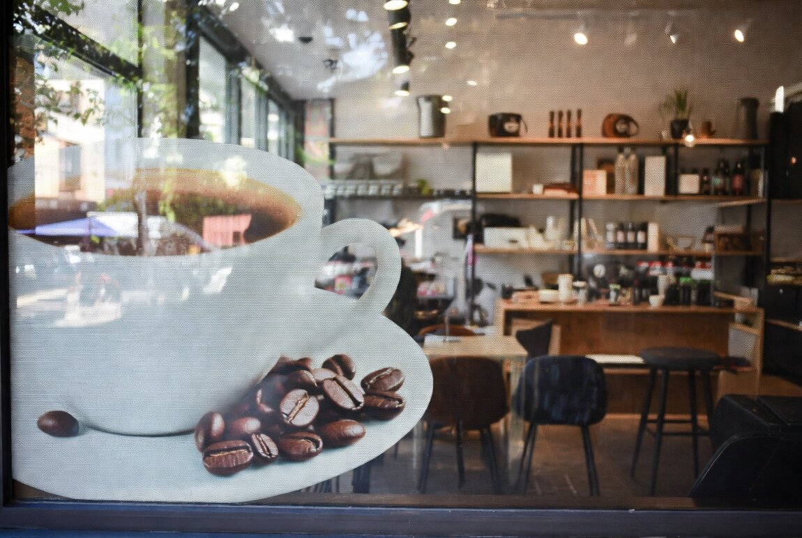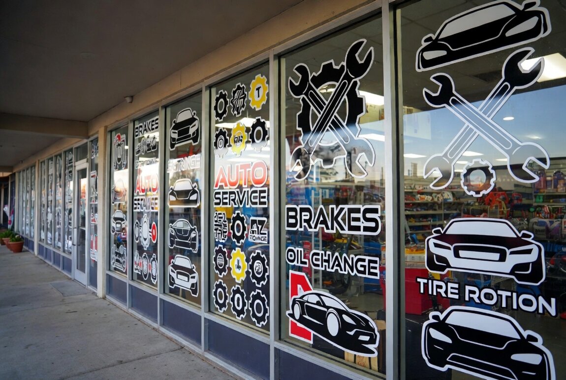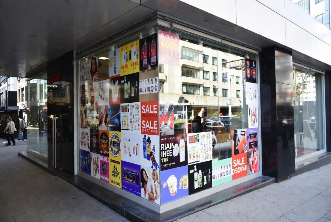 Изготавливаем рекламные наклейки на витрины, окна и стеклянные двери из качественной пленки Oracal и перфорированной пленки (one way vision).