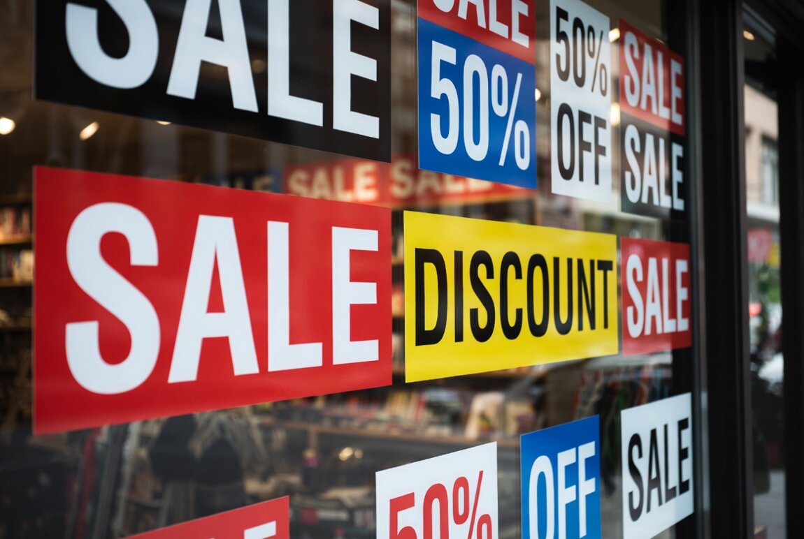 Наклейки с логотипом, текстом, акциями