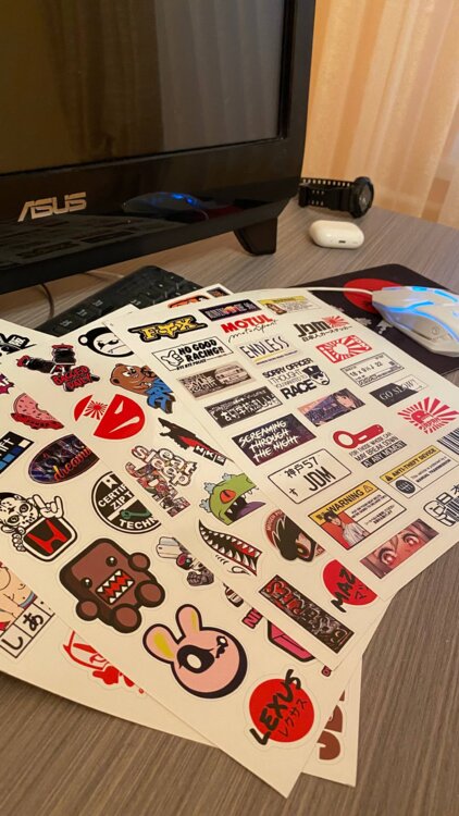 Качественные наклейки на ваше авто, стикеры на ноутбуки и куда угодно как подскажет ваша фантазия. Очень качественного материала, не оставляют после себя клей, яркие сочные цвета.