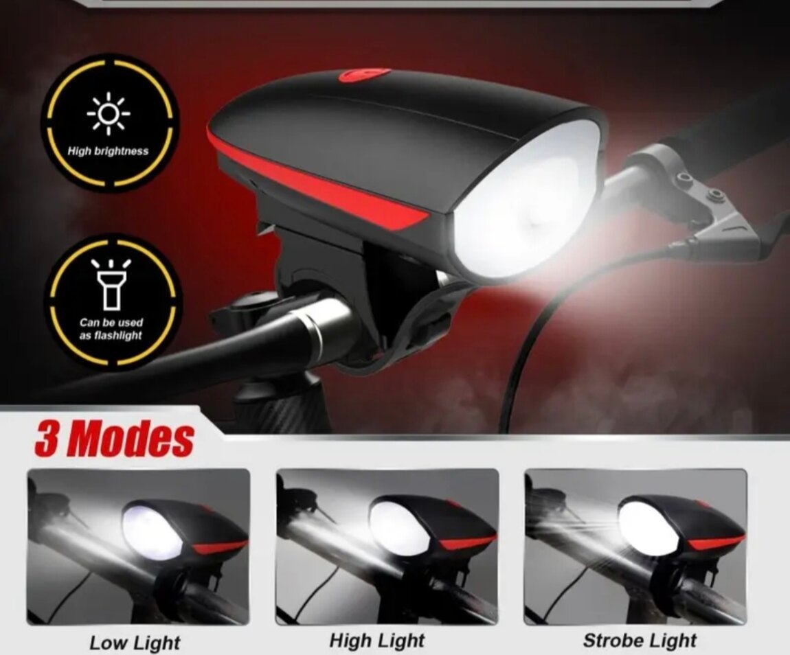 Многофункциональный велосипедный LED фонарь и гудок. Оснащенный тремя режимами освещения и громким гудком