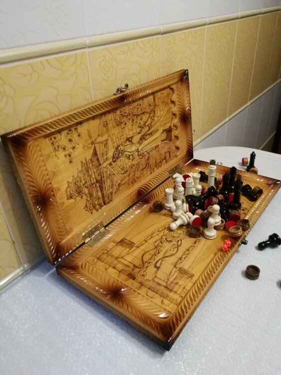 Нарды шахматы ручная резьба вырезанные со всех сторон и боков также и внутри нард есть резьба цветные био лаки нарды облагорожены чеканкой по дереву размер нард 60 на 60см фигурки и фишки ясень дуб кубики кость. Поиграл и повесил на стенку украсит любой интерьер и создаст уютную обстановку а не будут пылиться в углу. Широкий выбор в наличии выбираете. Пишите звоните телеграм ватцап ваибер и мы вам поможем выбрать эксклюзивные нарды ручной резьбы а не дешёвую поделку вырезанные на станке выдающую за ручную резьбу!