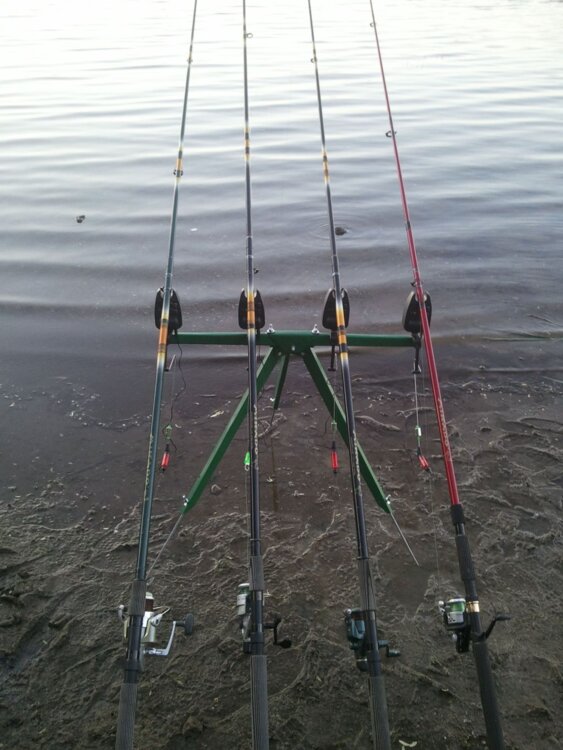 ПРАЦЮЄМО! ТОВАР Є В НАЯВНОСТІ! Продам фідерні триноги під чотири вудилища. У даній конструкції фідерної триноги можливо встановлювати сигналізатори клювання та рогачі. Фідерна тринога вироблена за такою конструкцією, коли комель вудилища спирається об берег водойми. Тобто один кінець вудилища спирається на підставку, а інший кінець вудилища об берег водойми, при цьому вудилище знаходиться під кутом 35-40 градусів (фабрично виробляються на території України).