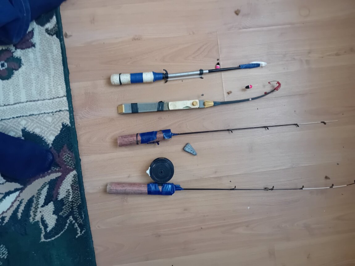 Рыболовные принадлежности для зимней рыбалки.