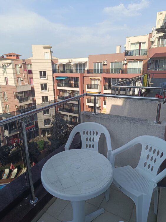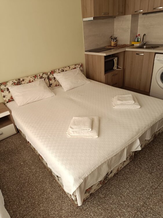 Сдаётся квартира-студия в центре Солнечного берега! Квартира расположена на 5-ом этаже апарт-отель комплекса Адмирал Плаза с видом на бассейн, имеется лифт! В 5-ти минутах ходьбы от песчаного берега Черного моря!