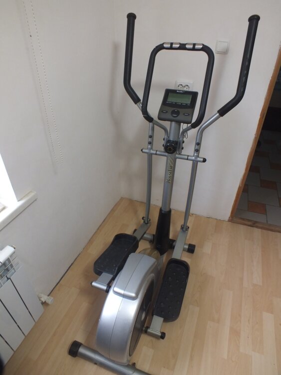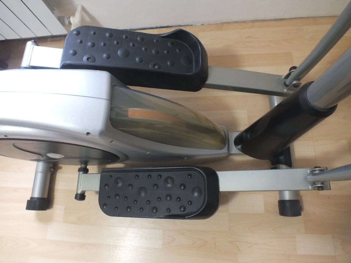 Эллиптический тренажер – это кардиотренажер, в котором педали двигаются по эллиптической дуге за счет маховика. Он достаточно массивный, имеет также статические поручни, подвижные ручки и панель управления. Имитирует ходьбу или бег, напоминающий лыжный.