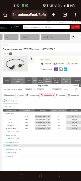 Продам датчик коленвала и датчик распредвала подходят на ауди и WV датчик распредвала 350р и датчик коленвала 250р