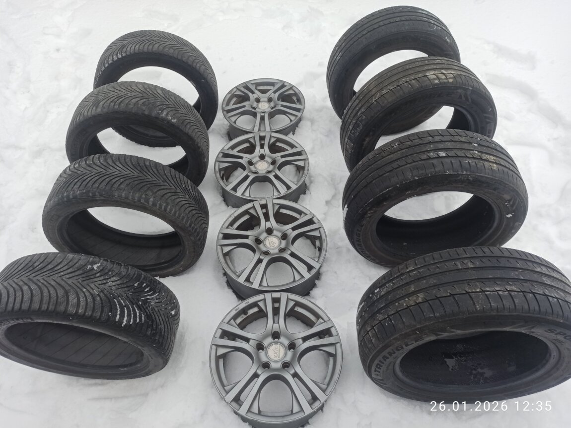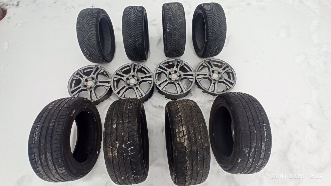 Все шины и диски в хорошем состоянии, дорогу держат отлично, не бьют, без грыж и дефектов.