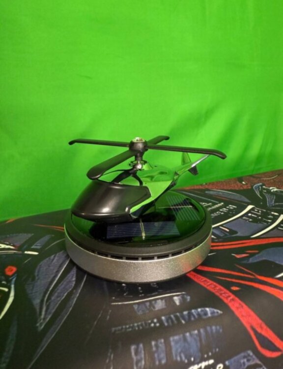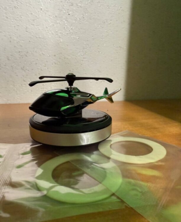 Ароматизатор-вертолёт на солнечной батарее для авто. На солнце винт вращается, создавая декоративный эффект. В комплекте — 2 ароматические таблетки в подарок.