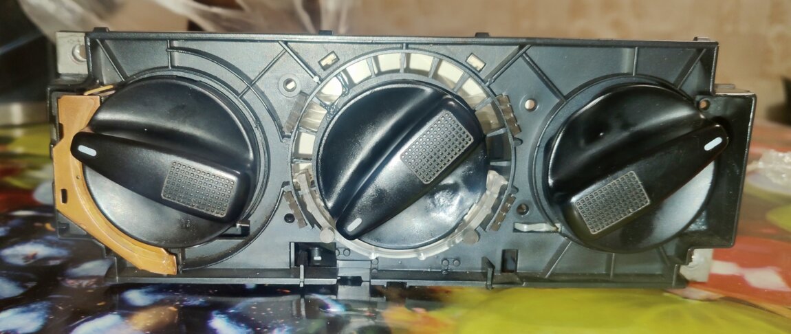 3. Блок управления отопителя печки гольф 3 (на три тросика). Два ушка крепления обломаны, можно восстановить.