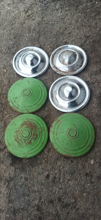 Меняю колпаки от ретро инвалидок 3 хром б. у и 3 крашенные б у на другие колпаки Только металл