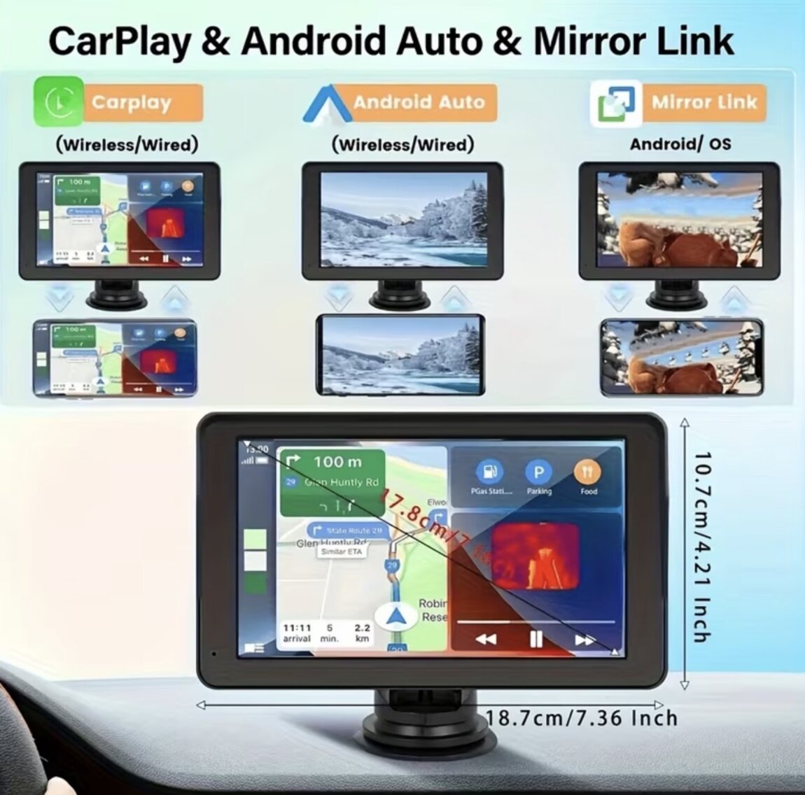Автомобильный плеер, можно подключить к нему камеру заднего вида, слушать музыку по Bluetooth, использовать CarPlay и Android auto, также читает флешки