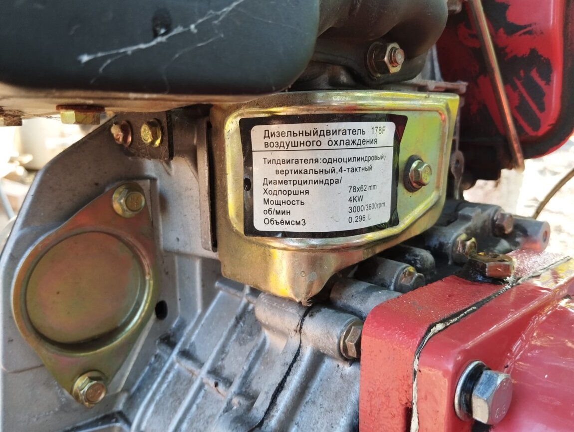 На данном мотоблоке стоит дизельный 178F (аналог HONDA), на 6 л. с.