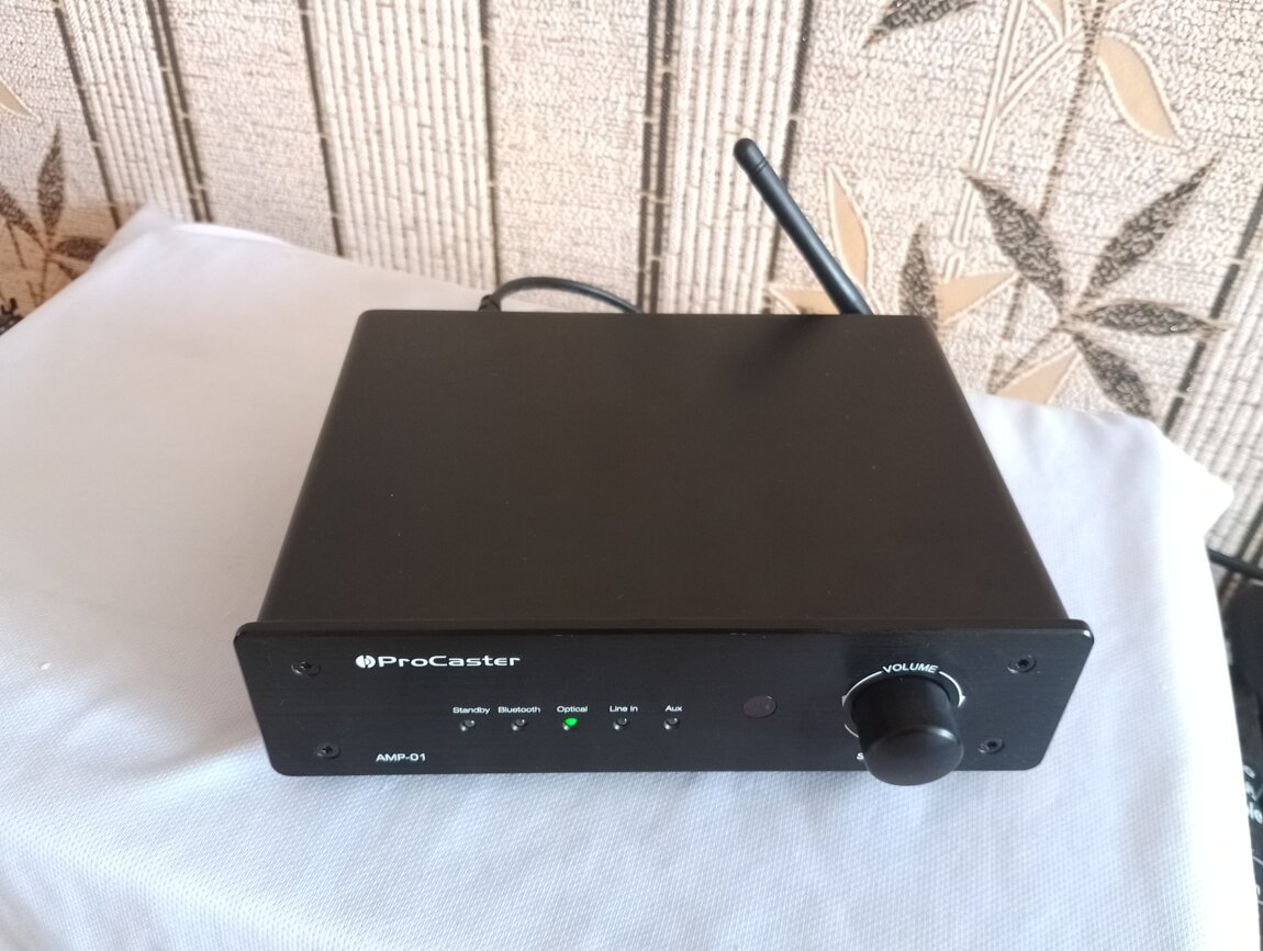 Продам недорого отличный стерео усилитель ProCaster AMP-01, средняя рабочая мощность 2х50 Вт (4 ом), входы: беспроводное подключение по Bluetooth, Optical, Line in, Aux, выход на активный сабвуфер, регулятор громкости со встроенной кнопкой для выбора источника сигнала, позолоченные зажимы для проводов, полностью весь металлический, размеры: (ширина 20 см, глубина 15 см, высота 5 см), вес 2 кг, усилитель имеет компактные размеры и не занимает много места и в этом большой плюс, отличная выходная мощность и высокая громкость, по звуку ничем не хуже чем обычные усилители с такой же мощностью. Единственное нет пульта, он здесь вообще и не нужен. Сделан в 2018 году (страна производитель Финляндия, Хельсинки). Новый стоил 149€. Цена 600 руб. Тирасполь. Тел. 77851177