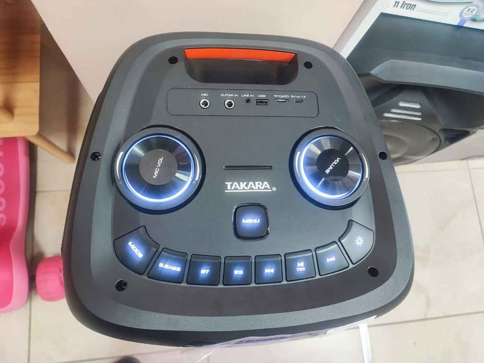 Портативная акустика супер бумбокс премиум качества с двумя радио микрофонами Takara в стиле SONY, стильный дизайн в дополнении с очень красивым насыщенным звуком мощные басы и яркие высокие частоты, поддерживает необходимые функции для воспроизведения качественной музыки