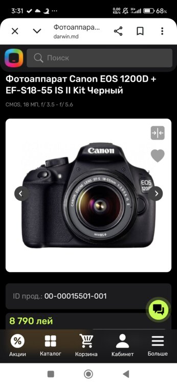 Продаю зеркальный фотоаппарат Canon EOS 1200D с объективом EF-S 18-55mm IS II (со стабилизатором изображения).