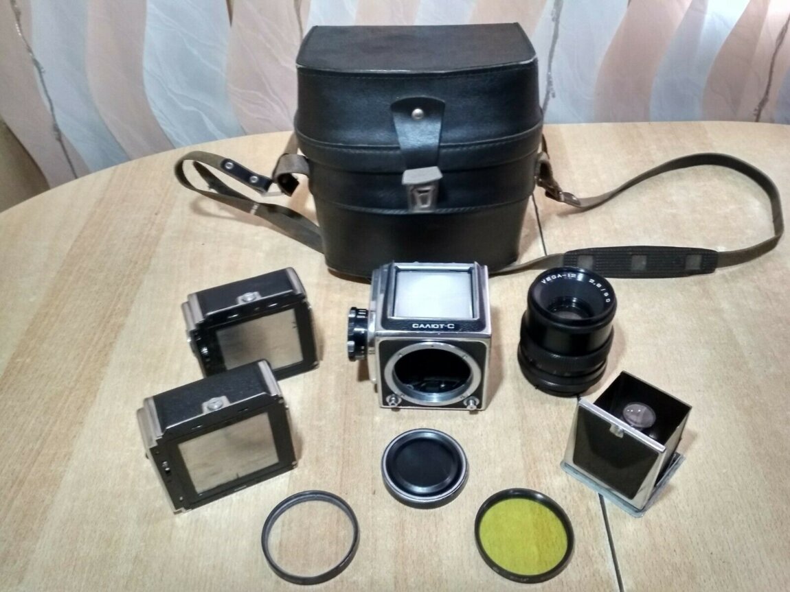 Салют-С советская копия легендарного Hasselblad. Предшественник Киев-88(Kiev-88). Почти идеальное состояние для такого возраста. Полностью проверенная, рабочая камера.
