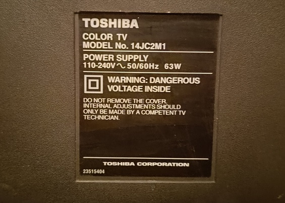 1. Телевизор Toshiba отлично работает, с пультом. Диагональ экрана 14 дюймов (35см).