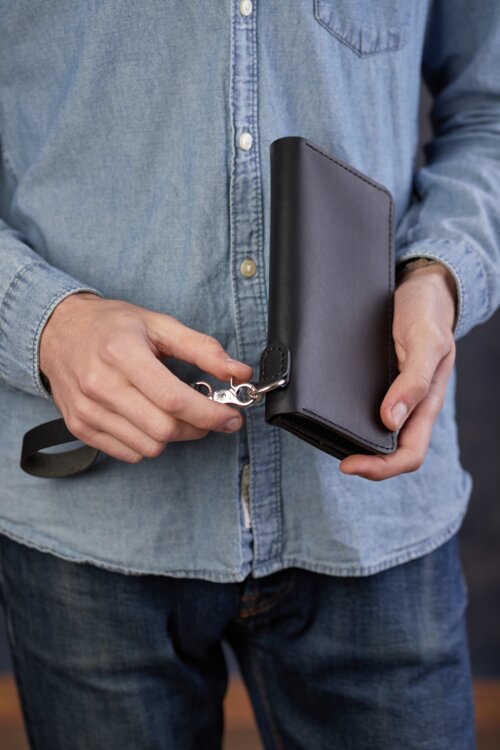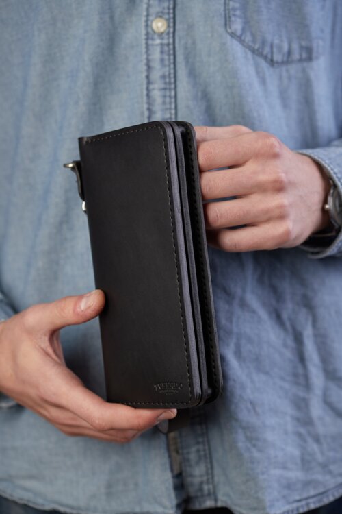 Модель «The Titan» – это практичное изделие на каждый день: на работу, в институт или на прогулку. Вместимость аксессуара от 5* пластиковых карт, до 50 купюр, телефон, паспорт, монеты и прочие небольшие документы.