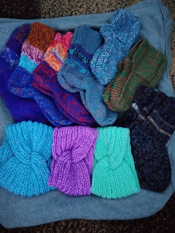 Теплые вязаные носки и повязки на голову