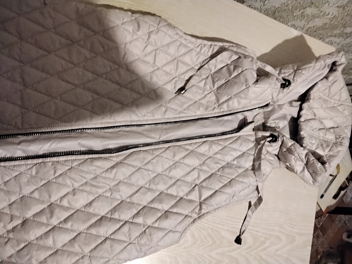Жилет зеленый, рост 140 см, жилет с капюшоном, бежевый, длина 52 см, ширина 36 см, стежка в клеточку