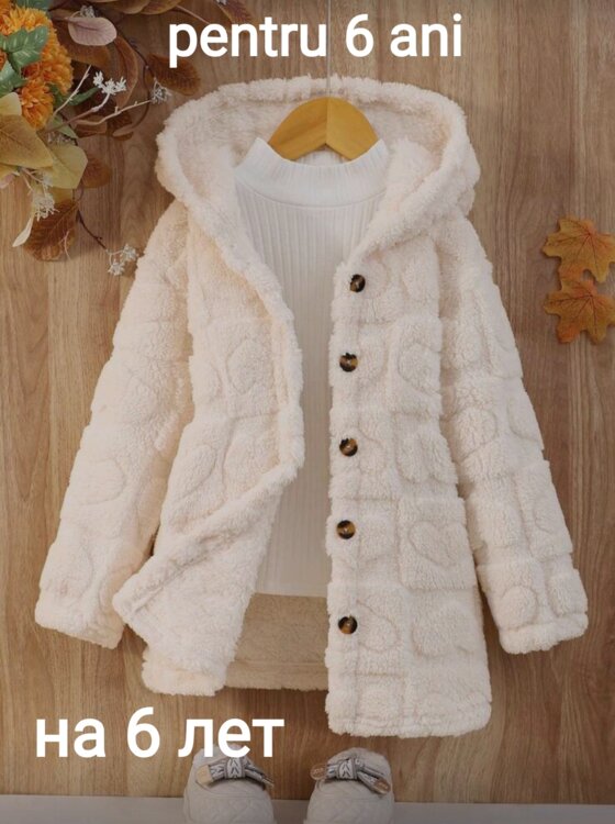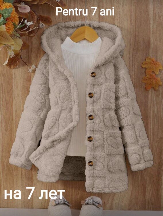 Geacă de iarnă pentru fete de zi cu zi. Mâneci lungi, glugă căptușită, cu fleece, moale.