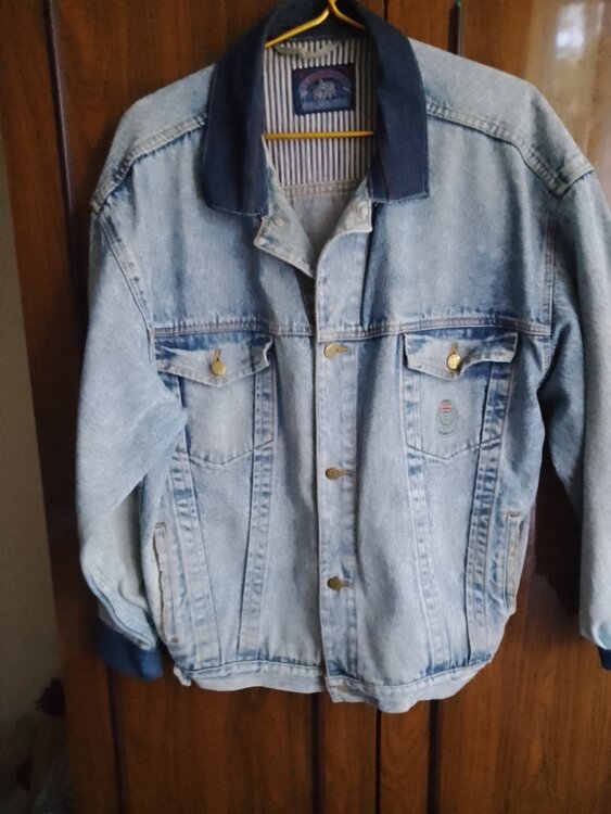150.00(теплую). см. фото(голубая с полосками), пуховик муж. б/у раз. 54-56-250руб., джинсовая куртка раз. 54-56 б/у цена-200руб.