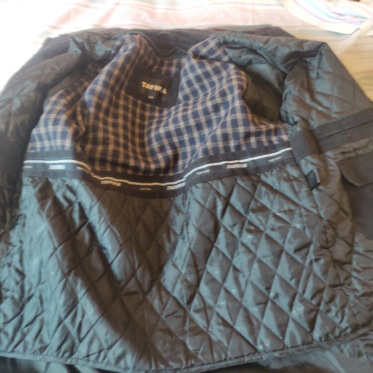 Мужская куртка с утеплителем коричневого цвета. С подстежкой. Размер 52/54.Состояние хорошее. Длина 86см. Рукав 67см(нар. шов. )52см(внутр. шов. ). Обхват в груди 65см. Низ 64см.