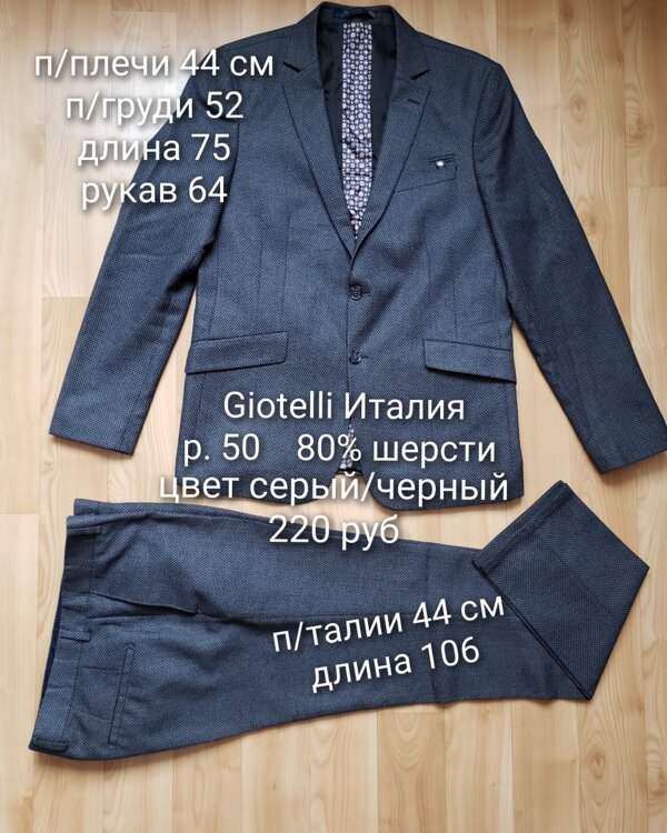 Производство Италии, Турции, в хорошем состоянии, без пятен, все пуговицы на месте, змейки в рабочем состоянии. Дополнительно можно сделать и другие замеры вещей.
