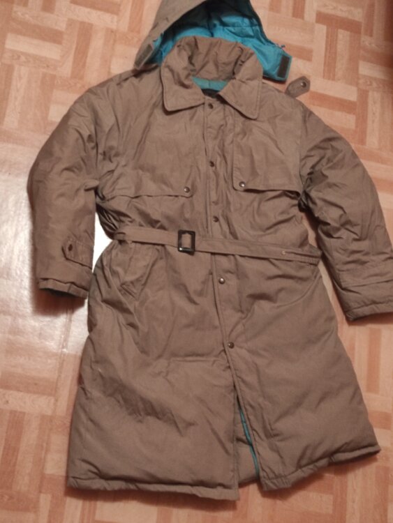 * Пальто -Парка (Пуховик)- фабричного производства, Качественная спец ткань, пошив, фурнитура. Цвет: хаки, темно - оливковый, Глубокий, съёмный капюшон, рабочие карманы, фото Объем регулируется-поясом -съёмный; Модель напоминает знаменитую Парку, которая Актуальна сегодня и останется в тренде ещё долгое время Простеган только Изнутри, что делает его похожим на тренч или Парку Длина изделия: 111 см, Размер: 48-50(52), но может подойти и на 46 будет, как лёгкий оверсайз.