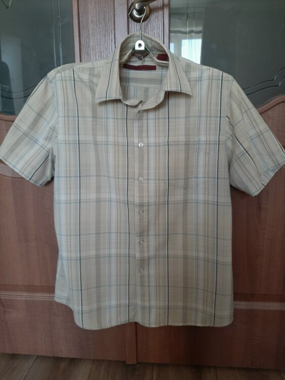 - Рубашка в клеточку с коротким рукавом. Размер М. Ширина подмышками 57 см. Немного б/у, состояние очень хорошее. Цена 15 руб.