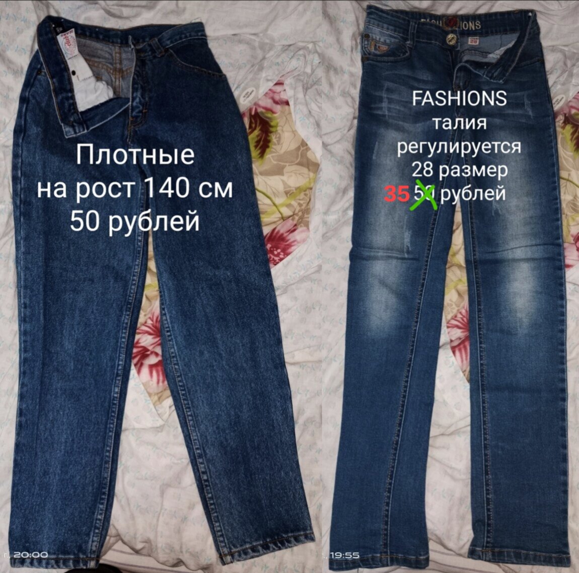 Джинсы плотные на узкую талию, на рост 140 см — 50 рублей — ПРОДАНО