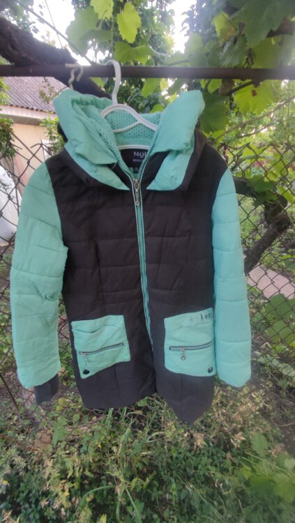 4. Пальто бирюзовое. Подойдёт на рост до 150-160 см. Цена 150 руб