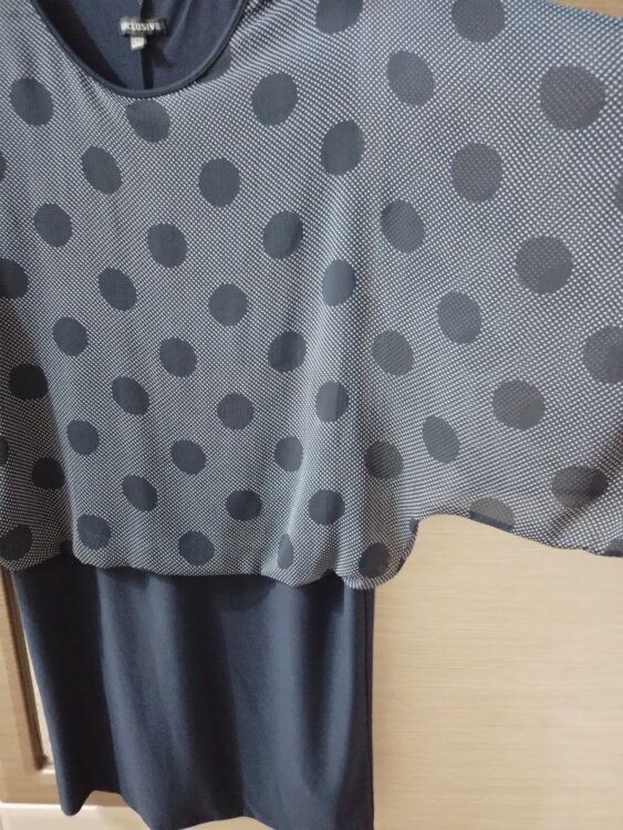 2. Платье б/у комбинированное: синий низ и синий верх в крупный горошек, размер 48-50, на рост