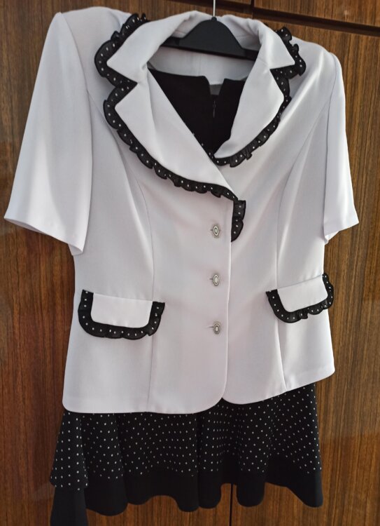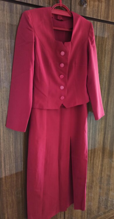 Костюм двойка, красный - платье + жакет – размер S – 200 лей