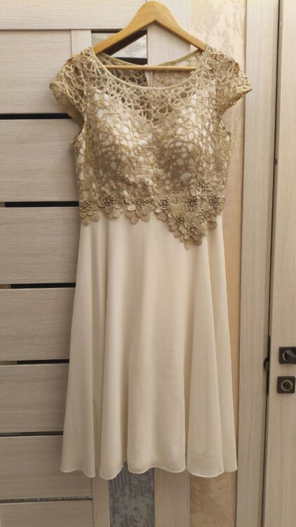 Продам элегантное бежевое платье, верх вышивка, подклад атлас, сверху шифон. Сзади на молнии. Было одето всего 1 раз, Размер 46, идеально для свадьбы, выпускного или любого торжественного вечера. Можно примерять. За информацией обращаться в телеграмм или ватсап.