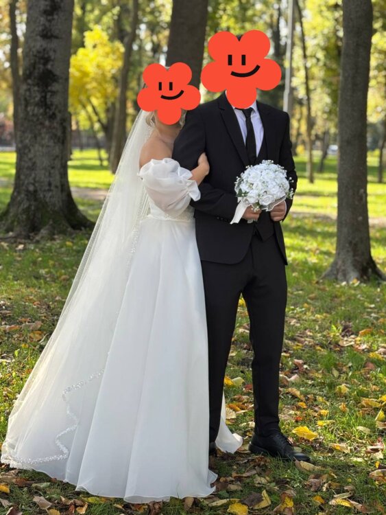 Vînd rochie de mireasă necununată, voal, cerc si buchetul miresei ofer cadou.