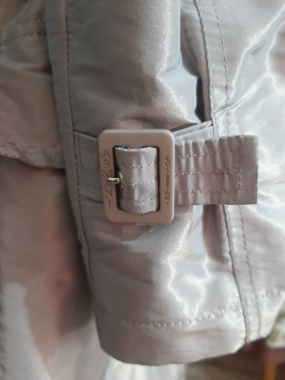 - Плащ Armani collezioni серо-сиреневого цвета. Двубортная застежка. Пояс. Цена 60 руб.