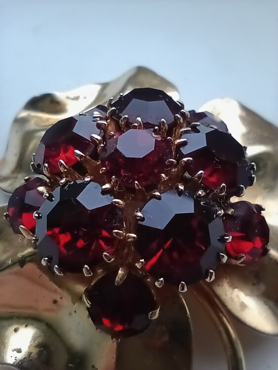 Продам позолоченную брошь с рубинами. Осталась от бабушки. Внешний вид на 4-ку.