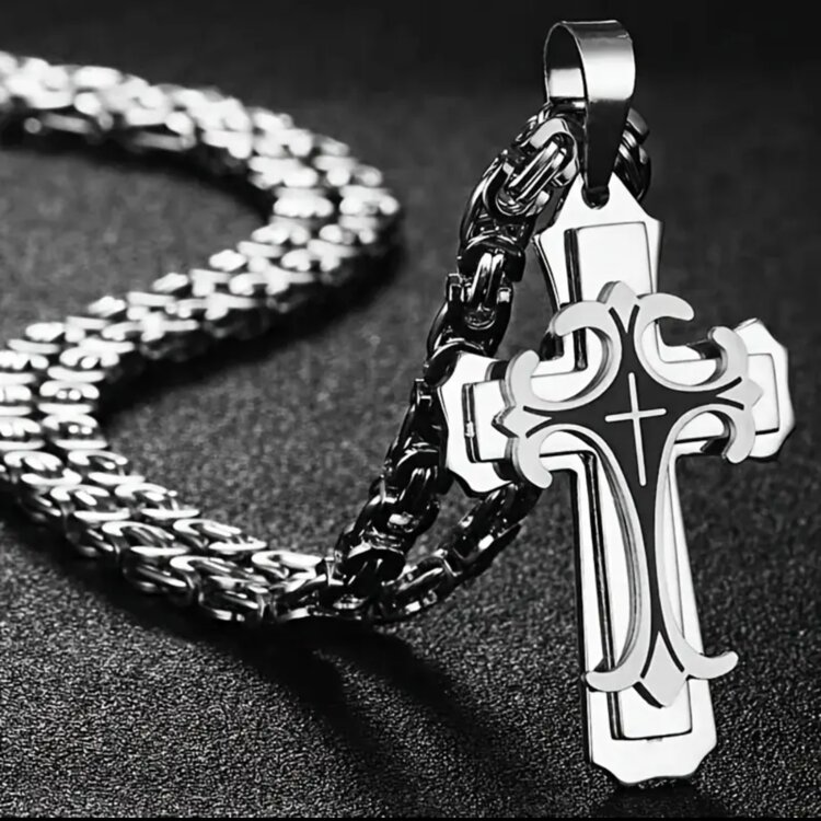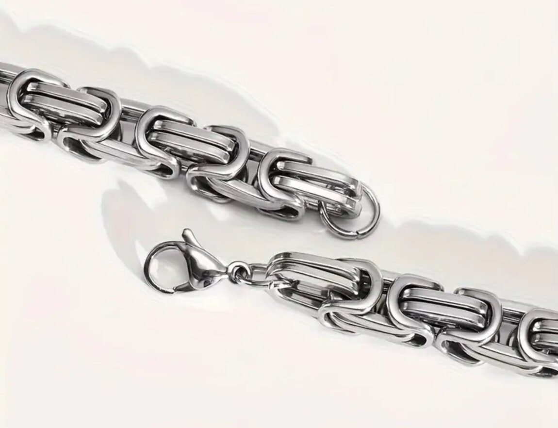 Нержавеющая сталь. Длина цепи 60см, браслета 20см. Толщина 8мм.