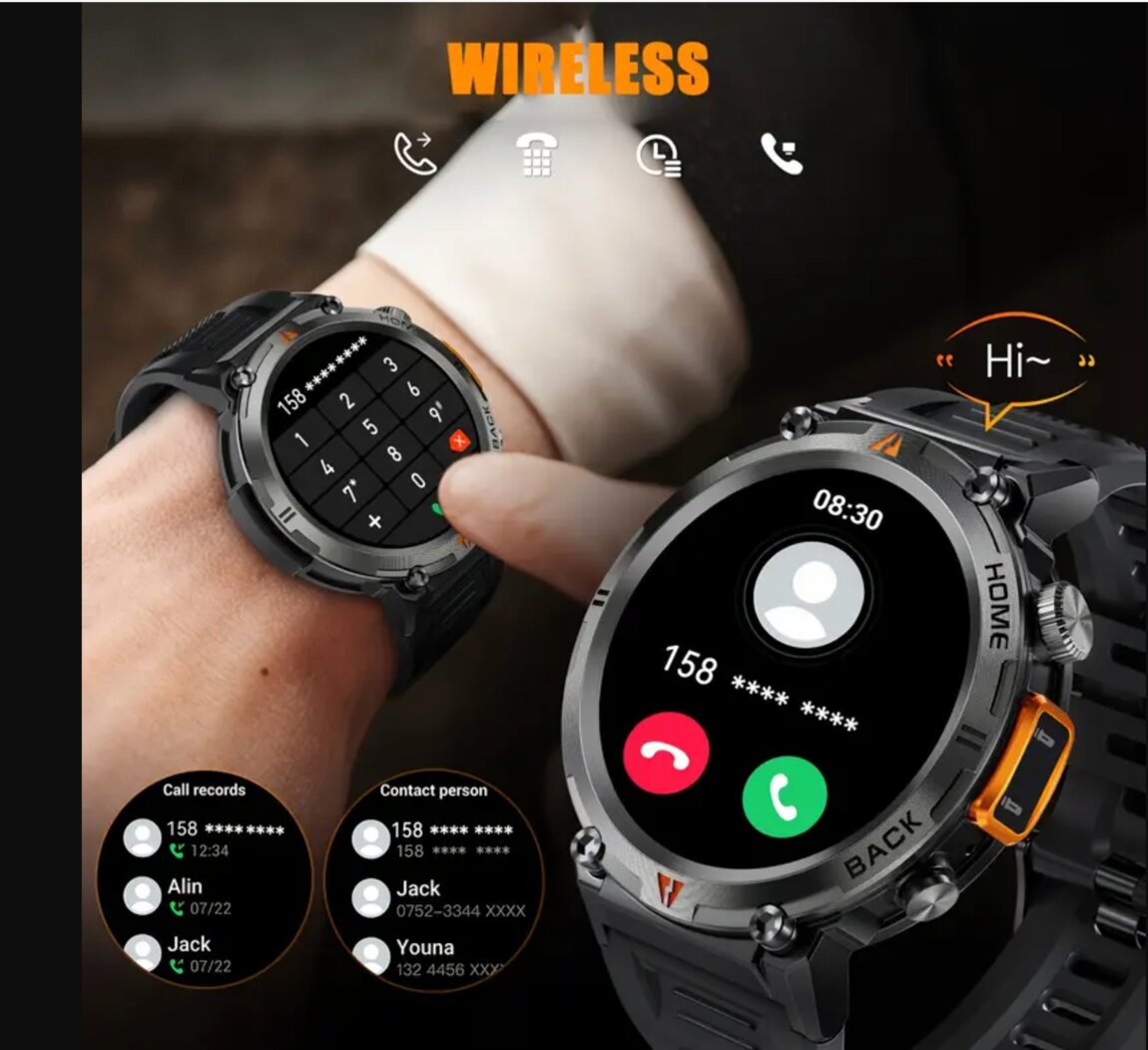 Ceas inteligent cu ecran tactil de 3,68 cm pentru bărbați, baterie încorporată, cu apeluri/primire informații wireless, alarmă, redare muzică, suportă mai multe moduri sportive, ceas pentru iPhone și telefoane Android Nivel de impermeabilitate: IPX-8 Versiune wireless: Wireless 5.2 Tip ecran: TFT Rezoluție ecran: 360*360 Capacitate baterie (mAh): 300 Material: Aliaj de zinc