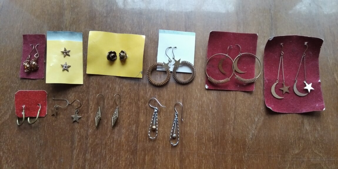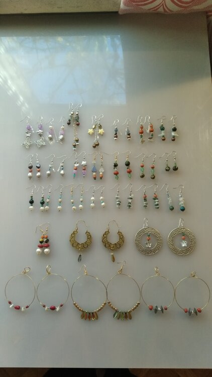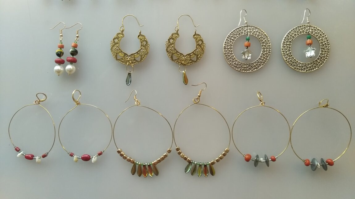 Серьги с натуральными камнями ручной работы - по 200 л., серьги и кулоны - по 10 л., кольца - по 2 л., ожерелья и браслеты из полимерной глины ручной работы - по 50 л., конфета из мальтийского цветного стекла ручной работы - 150 л.