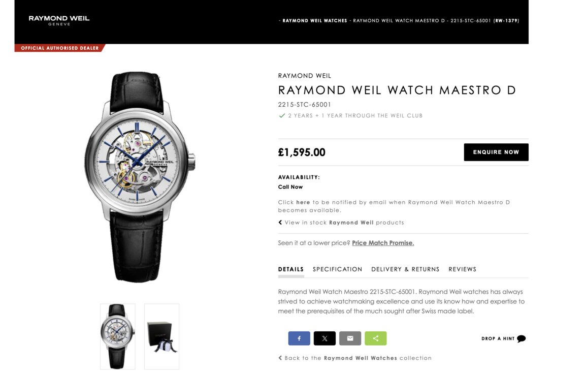 Raymond Weil Watch Maestro 2215-STC-65001. Raymond Weil watches has always strived to achieve watchmaking excellence and use its know how and expertise to meet the prerequisites of the much sought after Swiss made label.
