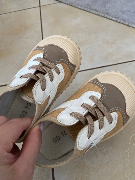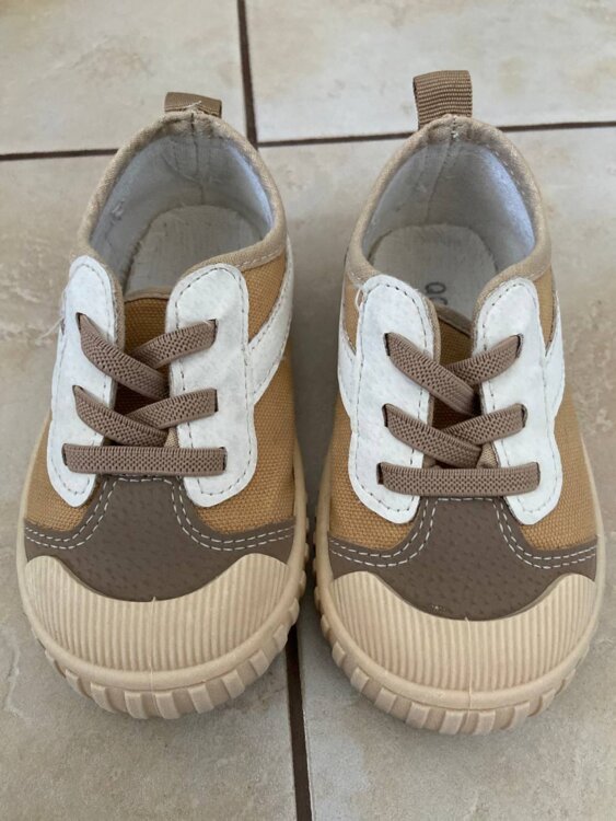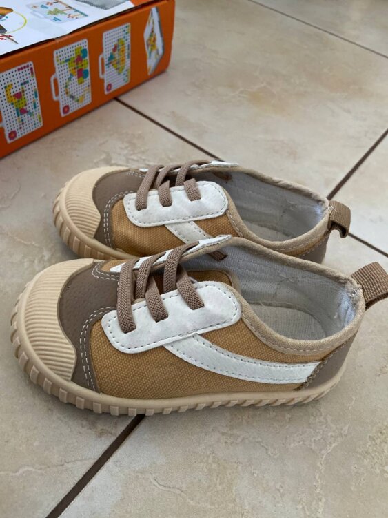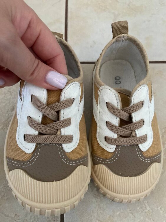 Кеды бежевые подойдут как на мальчика так и на девочку, размер 24, по стельке 15 см. Удобно обувать для садика на сменку шнурки-резиночки.