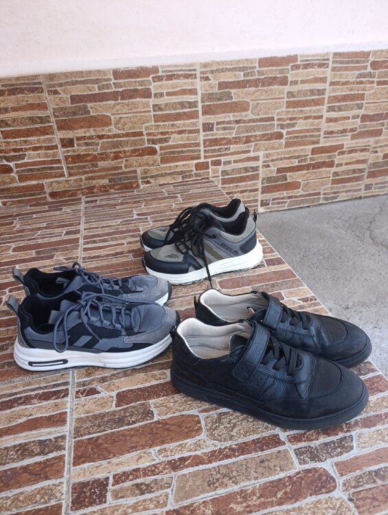Отличного качества и состояния. Обе пары кроссовок 39 размера, 150 руб каждая. Туфли 39 размер 150 руб.