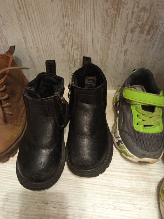 Детские кроссовки и ботиночки, размер 25 размер, черные и белые кроссовки по 150р в хорошем состоянии, черные ботинки 80р, коричневый ботинки 50р, две пары для сада бегать по 30р