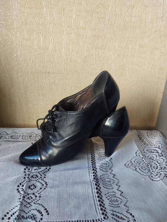 туфли черные невысокий каблук 41 размер кожа -150лей