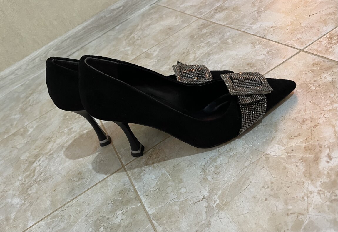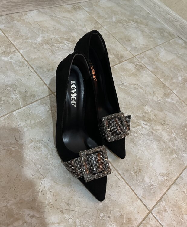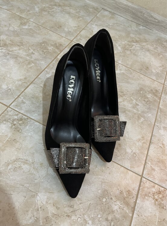 Элегантные чёрные туфли на каблуке, украшены стильными пряжками со стразами. Абсолютно новые, не носились.